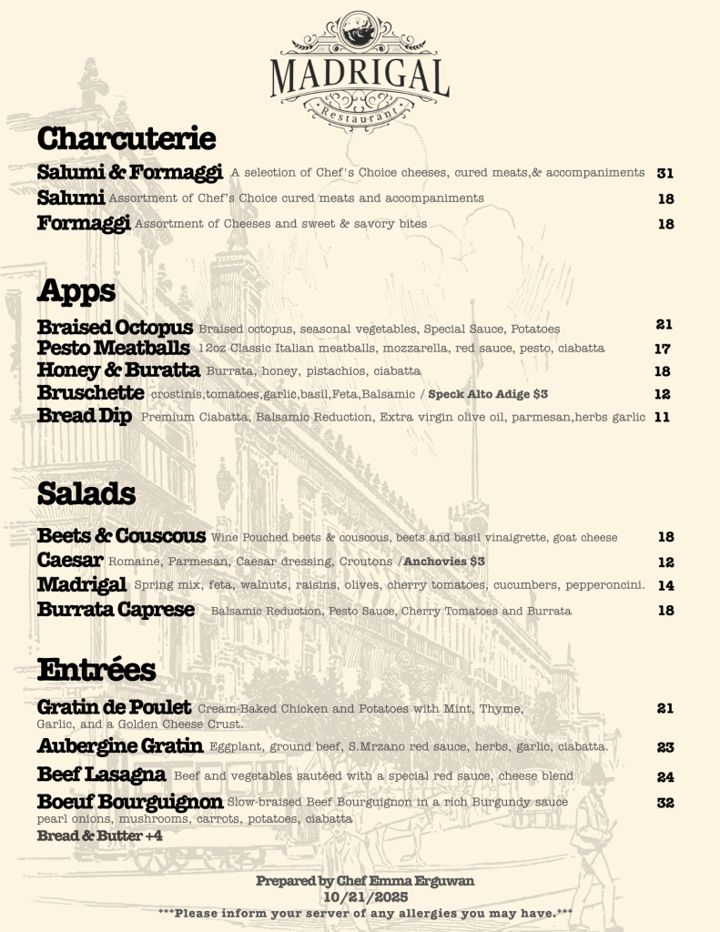 To ensure an optimal dining experience, we strongly encourage guests to reserve in advance. We graciously accommodate walk-ins until 8 PM based on availability. Please note: We do not offer takeout, as our menu is crafted to be enjoyed fresh and in-house.